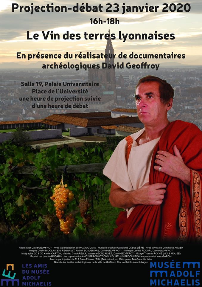 Le Musée Adolf Michaelis vous invite le jeudi 23 janvier à la projection du docu-fiction « Le vin des terres lyonnaises », inspiré des fouilles archéologiques d’un domaine vinicole romain, aux abords de Lugdunum (Lyon).